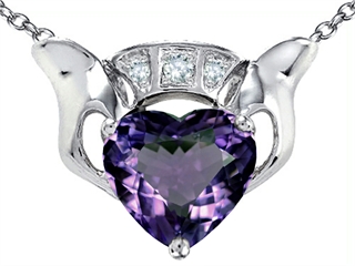 The amazing Celtic Love by Kelly 8mm Heart Claddagh Pendant With Simulated Alexandrite, crafted in .925 Sterling Silver. This beautiful design is set with 1 stone prong set color change Heart Shape Simulated Alexandrite, 3 stones prong set colorless Round Cubic Zirconia. This product measures 16.50 mm wide, 13.50 mm long. Alexandrite is June Birthstone: Named after Czar Alexander II of Russia, this very rare gem has the ability to change color. A symbol for change, Alexandrite is said to inspire imagination, creativity and confidence. Free 18 inches chain included Warranty: - This item is covered by Finejewelers exclusive Silver Shield Lifetime Warranty. This exclusive lifetime coverage is offered ONLY by Finejewelers so please shop with confidence, our quality is guaranteed for life!