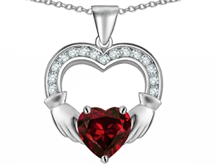 This alluring Celtic Love by Kelly Hands Holding 8mm Heart Claddagh Pendant With Genuine Garnet, crafted in .925 Sterling Silver. This attractive design is set with 1 stone prong set red-brown Heart Shape Garnet, 15 stones prong set colorless Round Cubic Zirconia. This design measures 18.00 mm wide, 23.00 mm long. Garnet is January Birthstone: From the Latin word 'granatus', the seeds of a pomegranate fruit. A symbol of fidelity, Garnet's powers include healing, strength, protection. Free 18 inches chain included Warranty: - This item is covered by Finejewelers exclusive Silver Shield Lifetime Warranty. This exclusive lifetime coverage is offered ONLY by Finejewelers so please shop with confidence, our quality is guaranteed for life!