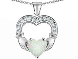 This beautiful Celtic Love by Kelly Hands Holding 8mm Heart Claddagh Pendant With Created Opal, crafted in 925 Sterling Silver. This attractive design is set with 1 stone prong set white iridescent Heart Shape Created Opal, 15 stones prong set colorless Round Cubic Zirconia. This design measures 18.00 mm wide, 23.00 mm long. Opal is October Birthstone: From the Greek 'opallios', meaning 'colour change'. A symbol of hope and faithfulness, it inspires true love and brings confidence. Free 18 inches chain included Warranty: - This item is covered by Finejewelers exclusive Silver Shield Lifetime Warranty. This exclusive lifetime coverage is offered ONLY by Finejewelers so please shop with confidence, our quality is guaranteed for life!