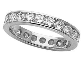 This delightful Karina B(tm) Round Diamonds Eternity Band, available in a range of metals including 18 kt Yellow Gold, 18 kt White Gold and Platinum 950. This amazing design is mounted with 22 stones 2.00 carats channel set Round Brilliant Diamond G color VS1 - VS2 clarity. This product measures 3.90 mm wide. Diamond is April Birthstone: From the Greek 'adamas' meaning 'invincible'. A symbol of enduring love, it is believed to bring the wearer luck and success. Made in USA Designer: Karina B - Classic style, elegant design and perfect craftsmanship. This is the inspiration behind Karina B. Each design we create is produced with the latest technological advancements in computers and machinery. Every piece of jewelry manufactured is done from scratch according to the exact specifications of the design and stone sizes. Each precious stone is set with the guidance of a master stone setter, using the equipment that was not available in the past, to precise measurements of a hundredth of a millimeter. Combining our manufacturing techniques with high quality diamonds and precious stones along with Platinum or 18 KT gold gives you, the educated consumer, an exceptional masterpiece. If you are lucky enough to own a piece by Karina B., wear it with the confidence and pride of knowing that there is nothing made better. Warranty: - This item is covered by Finejewelers exclusive Silver Shield Lifetime Warranty. This exclusive lifetime coverage is offered ONLY by Finejewelers so please shop with confidence, our quality is guaranteed for life!. Metal Available: 18 kt Yellow Gold, 18 kt White Gold, Platinum 950.