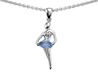This stunning Original Star K(tm) Ballerina Dancer Pendant with Round 7mm Simulated Aquamarine, crafted in .925 Sterling Silver. This attractive design is set with 1 stone prong set faint blue Round Simulated Aquamarine. This product measures 10.00 mm wide, 28.00 mm long. Aquamarine is March Birthstone: From the latin `aqua` and `mare` meaning 'sea water'. Aquamarine is said to provide everlasting youth, courage, and happiness. Free 18 inches chain included Designer: Star K - This beautiful design, is part of the exclusive Star K. jewelry collection. Star K. designs are copyrighted, so please be aware of cheap imitations selling online. Only original Star K. creations are made using the highest quality materials and craftsmanship, backed by an exclusive Lifetime Warranty. Warranty: - This item is covered by Finejewelers exclusive Silver Shield Lifetime Warranty. This exclusive lifetime coverage is offered ONLY by Finejewelers so please shop with confidence, our quality is guaranteed for life!