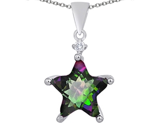 The impressing Original Star K(tm) Large 14mm Fancy Star Pendant with Simulated Mystic Topaz, crafted in 925 Sterling Silver. This attractive design is mounted with 1 stone prong set multicolor Star Shape Simulated Mystic Topaz clean clarity, 1 stone prong set colorless Round Cubic Zirconia clean clarity. This design measures 17.00 mm wide, 26.00 mm long. Free 18 inches chain included Designer: Star K - This beautiful design, is part of the exclusive Star K. jewelry collection. Star K. designs are copyrighted, so please be aware of cheap imitations selling online. Only original Star K. creations are made using the highest quality materials and craftsmanship, backed by an exclusive Lifetime Warranty. Warranty: - This item is covered by Finejewelers exclusive Silver Shield Lifetime Warranty. This exclusive lifetime coverage is offered ONLY by Finejewelers so please shop with confidence, our quality is guaranteed for life!