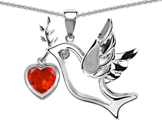 This attractive Original Star K(tm) Peace Love Dove Pendant with Heart Shape 7mm Simulated Orange Mexican Fire Opal, crafted in .925 Sterling Silver. This beautiful design is set with 1 stone bezel set red- orange Heart Shape Simulated Red Fire Opal. This design measures 25.00 mm wide, 25.00 mm long. Free 18 inches chain included Designer: Star K - This beautiful design, is part of the exclusive Star K. jewelry collection. Star K. designs are copyrighted, so please be aware of cheap imitations selling online. Only original Star K. creations are made using the highest quality materials and craftsmanship, backed by an exclusive Lifetime Warranty. Warranty: - This item is covered by Finejewelers exclusive Silver Shield Lifetime Warranty. This exclusive lifetime coverage is offered ONLY by Finejewelers so please shop with confidence, our quality is guaranteed for life!