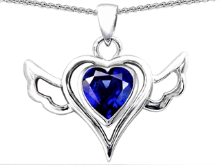 This stunning Original Star K(tm) Wings Of Love Pendant with Created Heart Sapphire, crafted in 925 Sterling Silver. This attractive design is mounted with 1 stone prong set blue Heart Shape Created Sapphire. This style measures 25.00 mm wide, 23.00 mm long. Sapphire is September Birthstone: From the Latin 'sapphirus' meaning 'blue'. A symbol for truth and sincerity, it inspires spiritual enlightenment, health and inner peace. Free 18 inches Sterling Silver Chain included Designer: Star K - This beautiful design, is part of the exclusive Star K. jewelry collection. Star K. designs are copyrighted, so please be aware of cheap imitations selling online. Only original Star K. creations are made using the highest quality materials and craftsmanship, backed by an exclusive Lifetime Warranty. Warranty: - This item is covered by Finejewelers exclusive Silver Shield Lifetime Warranty. This exclusive lifetime coverage is offered ONLY by Finejewelers so please shop with confidence, our quality is guaranteed for life!
