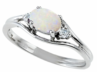 This alluring Tommaso Design(tm) Genuine Opal and Diamond Ring, crafted in 10 kt White Gold. This attractive design is set with 1 stone 0.18 carats prong set white iridescent Oval Opal, 2 stones 0.04 carats prong set Round Brilliant Diamond K color I3 clarity. This design measures 8.00 mm wide, 4.00 mm long. Opal is October Birthstone: From the Greek 'opallios', meaning 'colour change'. A symbol of hope and faithfulness, it inspires true love and brings confidence. Diamond is April Birthstone: From the Greek 'adamas' meaning 'invincible'. A symbol of enduring love, it is believed to bring the wearer luck and success. Made in USA Designer: Tommaso design Studio - This classic design, is made by the renowned Tommaso Design Studio. Tommaso creations are copyrighted, so please be aware of cheap imitations selling online. Only original Tommaso designs are made using the highest quality materials and craftsmanship, backed by an exclusive Lifetime Warranty. Warranty: - This item is covered by Finejewelers exclusive Silver Shield Lifetime Warranty. This exclusive lifetime coverage is offered ONLY by Finejewelers so please shop with confidence, our quality is guaranteed for life!