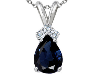 This beautiful Tommaso Design(tm) Genuine Sapphire and Diamond Pendant, crafted in 10 kt White Gold. This beautiful design is mounted with 1 stone 1.20 carats prong set medium to dark blue Pear Shape Sapphire, 3 stones 0.06 carats prong set Round Brilliant Diamond K color I3 clarity. This style measures 6.00 mm wide, 15.00 mm long. Sapphire is September Birthstone: From the Latin 'sapphirus' meaning 'blue'. A symbol for truth and sincerity, it inspires spiritual enlightenment, health and inner peace. Diamond is April Birthstone: From the Greek 'adamas' meaning 'invincible'. A symbol of enduring love, it is believed to bring the wearer luck and success. Free 18 inches chain included Designer: Tommaso design Studio - This classic design, is made by the renowned Tommaso Design Studio. Tommaso creations are copyrighted, so please be aware of cheap imitations selling online. Only original Tommaso designs are made using the highest quality materials and craftsmanship, backed by an exclusive Lifetime Warranty. Warranty: - This item is covered by Finejewelers exclusive Silver Shield Lifetime Warranty. This exclusive lifetime coverage is offered ONLY by Finejewelers so please shop with confidence, our quality is guaranteed for life!