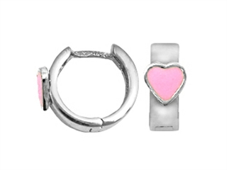 925 Sterling Silver Childrens Hoop Earrings with Pink Heart