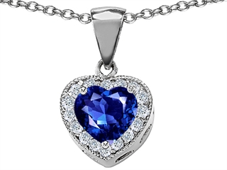 The alluring Original Star K(tm) 8mm Heart Shape Created Sapphire Pendant, crafted in .925 Sterling Silver. This attractive design is set with 1 stone prong set blue Heart Shape Created Sapphire, 16 stones prong set colorless Round Cubic Zirconia. This product measures 12.00 mm wide, 18.00 mm long. Sapphire is September Birthstone: From the Latin 'sapphirus' meaning 'blue'. A symbol for truth and sincerity, it inspires spiritual enlightenment, health and inner peace. Free 18 inches chain included Designer: Star K - This beautiful design, is part of the exclusive Star K. jewelry collection. Star K. designs are copyrighted, so please be aware of cheap imitations selling online. Only original Star K. creations are made using the highest quality materials and craftsmanship, backed by an exclusive Lifetime Warranty. Warranty: - This item is covered by Finejewelers exclusive Silver Shield Lifetime Warranty. This exclusive lifetime coverage is offered ONLY by Finejewelers so please shop with confidence, our quality is guaranteed for life!