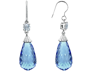 The stunning Original Star K(tm) Briolette Drop Cut Simulated Aquamarine Hanging Hook Chandelier Earrings, crafted in .925 Sterling Silver. This amazing design is mounted with 2 stones prong set faint blue Briolette Simulated Aquamarine, 2 stones prong set colorless Round Cubic Zirconia. This style measures 8.00 mm wide, 25.00 mm long. Aquamarine is March Birthstone: From the latin `aqua` and `mare` meaning 'sea water'. Aquamarine is said to provide everlasting youth, courage, and happiness. Designer: Star K - This beautiful design, is part of the exclusive Star K. jewelry collection. Star K. designs are copyrighted, so please be aware of cheap imitations selling online. Only original Star K. creations are made using the highest quality materials and craftsmanship, backed by an exclusive Lifetime Warranty. Warranty: - This item is covered by Finejewelers exclusive Silver Shield Lifetime Warranty. This exclusive lifetime coverage is offered ONLY by Finejewelers so please shop with confidence, our quality is guaranteed for life!