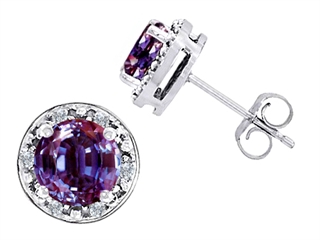 The attractive Original Star K(tm) Created 7mm Round Simulated Alexandrite And Genuine Diamond Earring Studs, crafted in .925 Sterling Silver. This amazing design is set with 2 stones prong set color change Round Simulated Alexandrite clean clarity, 12 stones prong set Round Brilliant Diamond K color I3 clarity. This style measures 9.00 mm wide, 9.00 mm long. Alexandrite is June Birthstone: Named after Czar Alexander II of Russia, this very rare gem has the ability to change color. A symbol for change, Alexandrite is said to inspire imagination, creativity and confidence. Diamond is April Birthstone: From the Greek 'adamas' meaning 'invincible'. A symbol of enduring love, it is believed to bring the wearer luck and success. Designer: Star K - This beautiful design, is part of the exclusive Star K. jewelry collection. Star K. designs are copyrighted, so please be aware of cheap imitations selling online. Only original Star K. creations are made using the highest quality materials and craftsmanship, backed by an exclusive Lifetime Warranty. Warranty: - This item is covered by Finejewelers exclusive Silver Shield Lifetime Warranty. This exclusive lifetime coverage is offered ONLY by Finejewelers so please shop with confidence, our quality is guaranteed for life!
