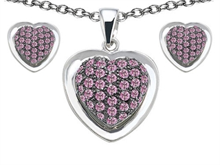 The beautiful Original Star K(tm) Created Pink Sapphire Heart Shape Love Pendant Box Set with matching earrings, crafted in 925 Sterling Silver. This amazing design is mounted with 82 stones prong set pink Round Created Pink Sapphire. This design measures 16.00 mm wide, 24.00 mm long. Sapphire is September Birthstone: From the Latin 'sapphirus' meaning 'blue'. A symbol for truth and sincerity, it inspires spiritual enlightenment, health and inner peace. Free 18 inches chain included Designer: Star K - This beautiful design, is part of the exclusive Star K. jewelry collection. Star K. designs are copyrighted, so please be aware of cheap imitations selling online. Only original Star K. creations are made using the highest quality materials and craftsmanship, backed by an exclusive Lifetime Warranty. Warranty: - This item is covered by Finejewelers exclusive Silver Shield Lifetime Warranty. This exclusive lifetime coverage is offered ONLY by Finejewelers so please shop with confidence, our quality is guaranteed for life!