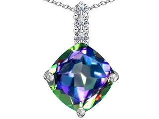 This delightful Original Star K(tm) Large 12mm Cushion Cut Rainbow Mystic Topaz Pendant, crafted in 925 Sterling Silver. This beautiful design is mounted with 1 stone prong set multicolor Cushion Cut Mystic Topaz, 3 stones prong set colorless Round Cubic Zirconia. This product measures 15.00 mm wide, 24.00 mm long. Free 18 inches Sterling Silver Chain included Designer: Star K - This beautiful design, is part of the exclusive Star K. jewelry collection. Star K. designs are copyrighted, so please be aware of cheap imitations selling online. Only original Star K. creations are made using the highest quality materials and craftsmanship, backed by an exclusive Lifetime Warranty. Warranty: - This item is covered by Finejewelers exclusive Silver Shield Lifetime Warranty. This exclusive lifetime coverage is offered ONLY by Finejewelers so please shop with confidence, our quality is guaranteed for life!