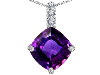 The amazing Original Star K(tm) Large 12mm Cushion Cut Simulated Amethyst Pendant, crafted in 925 Sterling Silver. This attractive design is mounted with 1 stone prong set violet Cushion Cut Simulated Amethyst, 3 stones prong set colorless Round Cubic Zirconia. This design measures 15.00 mm wide, 24.00 mm long. Amethyst is February Birthstone: From the Greek 'amethystos' meaning 'sober'. A symbol of trust, Amethyst is thought to protect against seduction and provide peace. Free 18 inches Sterling Silver Chain included Designer: Star K - This beautiful design, is part of the exclusive Star K. jewelry collection. Star K. designs are copyrighted, so please be aware of cheap imitations selling online. Only original Star K. creations are made using the highest quality materials and craftsmanship, backed by an exclusive Lifetime Warranty. Warranty: - This item is covered by Finejewelers exclusive Silver Shield Lifetime Warranty. This exclusive lifetime coverage is offered ONLY by Finejewelers so please shop with confidence, our quality is guaranteed for life!