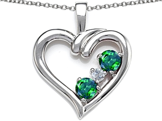 This attractive Original Star K(tm) Open Heart 3 Stone Pendant with Simulated Emerald, crafted in 925 Sterling Silver. This beautiful design is set with 2 stones prong set green Round Simulated Emerald, 1 stone prong set colorless Round Cubic Zirconia. This product measures 21.00 mm wide, 25.00 mm long. Emerald is May Birthstone: From the French 'esmeralde' meaning 'green gem'. A symbol of immortality, it is said to improve memory, wisdom and intuition. Free 18 inches chain included Designer: Star K - This beautiful design, is part of the exclusive Star K. jewelry collection. Star K. designs are copyrighted, so please be aware of cheap imitations selling online. Only original Star K. creations are made using the highest quality materials and craftsmanship, backed by an exclusive Lifetime Warranty. Warranty: - This item is covered by Finejewelers exclusive Silver Shield Lifetime Warranty. This exclusive lifetime coverage is offered ONLY by Finejewelers so please shop with confidence, our quality is guaranteed for life!