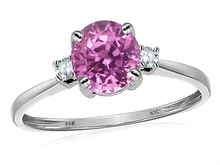 This impressive Tommaso Design(tm) 7mm Round Created Pink Sapphire and Diamond Classic 3 stone Engagement Ring, crafted in 14 kt White Gold. This amazing design is mounted with 1 stone prong set pink Round Created Pink Sapphire clean clarity, 2 stones prong set Round Brilliant Diamond K color I3 clarity. This style measures 7.00 mm wide, 7.00 mm long. Sapphire is September Birthstone: From the Latin 'sapphirus' meaning 'blue'. A symbol for truth and sincerity, it inspires spiritual enlightenment, health and inner peace. Diamond is April Birthstone: From the Greek 'adamas' meaning 'invincible'. A symbol of enduring love, it is believed to bring the wearer luck and success. Designer: Tommaso design Studio - This classic design, is made by the renowned Tommaso Design Studio. Tommaso creations are copyrighted, so please be aware of cheap imitations selling online. Only original Tommaso designs are made using the highest quality materials and craftsmanship, backed by an exclusive Lifetime Warranty. Warranty: - This item is covered by Finejewelers exclusive Silver Shield Lifetime Warranty. This exclusive lifetime coverage is offered ONLY by Finejewelers so please shop with confidence, our quality is guaranteed for life!