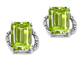 The dazzling Tommaso Design(tm) Emerald Cut 8x6mm Genuine Peridot and Diamond Earrings, available in 14 kt White Gold and 14 kt Yellow Gold. This amazing design is set with 2 stones 2.80 carats prong set green-yellow Emerald Cut Peridot, 4 stones 0.02 carats prong set Round Brilliant Diamond K color I3 clarity. This design measures 8.00 mm wide, 8.00 mm long. Peridot is August Birthstone: From the Greek 'Peridona' for 'giving plenty'. A symbol of the sun, Peridot is thought to bring good luck, peace, protection and success. Diamond is April Birthstone: From the Greek 'adamas' meaning 'invincible'. A symbol of enduring love, it is believed to bring the wearer luck and success. Designer: Tommaso design Studio - This classic design, is made by the renowned Tommaso Design Studio. Tommaso creations are copyrighted, so please be aware of cheap imitations selling online. Only original Tommaso designs are made using the highest quality materials and craftsmanship, backed by an exclusive Lifetime Warranty. Warranty: - This item is covered by Finejewelers exclusive Silver Shield Lifetime Warranty. This exclusive lifetime coverage is offered ONLY by Finejewelers so please shop with confidence, our quality is guaranteed for life!. Metal Available: 14 kt White Gold, 14 kt Yellow Gold.