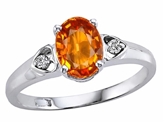 This delightful Tommaso Design(tm) Oval 7x5mm Genuine Orange Sapphire and Diamond Ring, available in 14 kt White Gold and 14 kt Yellow Gold. This amazing design is set with 1 stone 0.90 carats prong set dark yellow-orange Oval Orange Sapphire, 2 stones 0.04 carats prong set Round Brilliant Diamond K color I3 clarity. This style measures 5.00 mm wide, 7.00 mm long. Diamond is April Birthstone: From the Greek 'adamas' meaning 'invincible'. A symbol of enduring love, it is believed to bring the wearer luck and success. Made in USA Designer: Tommaso design Studio - This classic design, is made by the renowned Tommaso Design Studio. Tommaso creations are copyrighted, so please be aware of cheap imitations selling online. Only original Tommaso designs are made using the highest quality materials and craftsmanship, backed by an exclusive Lifetime Warranty. Warranty: - This item is covered by Finejewelers exclusive Silver Shield Lifetime Warranty. This exclusive lifetime coverage is offered ONLY by Finejewelers so please shop with confidence, our quality is guaranteed for life!. Metal Available: 14 kt White Gold, 14 kt Yellow Gold.