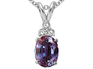 The dazzling Tommaso Design(tm) Oval 7x5mm Simulated Alexandrite And Genuine Diamond Pendant, available in 14 kt White Gold and 14 kt Yellow Gold. This attractive design is mounted with 1 stone prong set color change Oval Simulated alexandrite, 3 stones prong set Round Brilliant Diamond K color I3 clarity. This design measures 5.00 mm wide, 12.00 mm long. Alexandrite is June Birthstone: Named after Czar Alexander II of Russia, this very rare gem has the ability to change color. A symbol for change, Alexandrite is said to inspire imagination, creativity and confidence. Diamond is April Birthstone: From the Greek 'adamas' meaning 'invincible'. A symbol of enduring love, it is believed to bring the wearer luck and success. Free 18 inches chain included Designer: Tommaso design Studio - This classic design, is made by the renowned Tommaso Design Studio. Tommaso creations are copyrighted, so please be aware of cheap imitations selling online. Only original Tommaso designs are made using the highest quality materials and craftsmanship, backed by an exclusive Lifetime Warranty. Warranty: - This item is covered by Finejewelers exclusive Silver Shield Lifetime Warranty. This exclusive lifetime coverage is offered ONLY by Finejewelers so please shop with confidence, our quality is guaranteed for life!. Metal Available: 14 kt White Gold, 14 kt Yellow Gold.