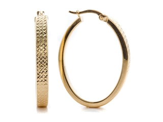 The alluring 18K Yellow Gold Plated Silver Textured Oval Hoop Earrings, crafted in 18k Yellow Gold Plated Silver. This design measures 4.00 mm wide. Warranty: - This item is covered by Finejewelers exclusive Silver Shield Lifetime Warranty. This exclusive lifetime coverage is offered ONLY by Finejewelers so please shop with confidence, our quality is guaranteed for life!