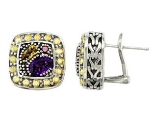 The beautiful Balissima By Effy Collection Sterling Silver and 18k Yellow Gold 1.20 cttw Multicolor Earrings, crafted in 925 Silver and 18k Yellow Gold. This attractive design is set with 2 stones 0.42 carats prong set Oval Amethyst, 2 stones 0.20 carats prong set Pear Shape Citrine, 2 stones 0.02 carats prong set Round Garnet Amethyst is February Birthstone: From the Greek 'amethystos' meaning 'sober'. A symbol of trust, Amethyst is thought to protect against seduction and provide peace. Citrine is November Birthstone: From the French 'citron' for 'lemon'. A symbol of success, is said to protect against sudden death and increase success and prosperity. Garnet is January Birthstone: From the Latin word 'granatus', the seeds of a pomegranate fruit. A symbol of fidelity, Garnet's powers include healing, strength, protection. Warranty: - This item is covered by Finejewelers exclusive Silver Shield Lifetime Warranty. This exclusive lifetime coverage is offered ONLY by Finejewelers so please shop with confidence, our quality is guaranteed for life!