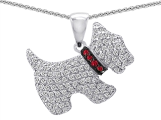 This alluring Original Star K(tm) Dog Pendant With Round Created Ruby And Cubic Zirconia, crafted in .925 Sterling Silver. This beautiful design is mounted with 5 stones prong set red Round Created Ruby clean clarity, 100 stones prong set colorless Round Brilliant Cubic Zirconia. This style measures 26.00 mm wide, 22.00 mm long. Ruby is July Birthstone: From the Latin 'ruber' meaning 'red'. King of gems and a symbol of royalty, it is said to inspire love, passion, confidence and leadership. Free 18 inches chain included Designer: Star K - This beautiful design, is part of the exclusive Star K. jewelry collection. Star K. designs are copyrighted, so please be aware of cheap imitations selling online. Only original Star K. creations are made using the highest quality materials and craftsmanship, backed by an exclusive Lifetime Warranty. Warranty: - This item is covered by Finejewelers exclusive Silver Shield Lifetime Warranty. This exclusive lifetime coverage is offered ONLY by Finejewelers so please shop with confidence, our quality is guaranteed for life!