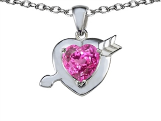 This beautiful Original Star K(tm) Heart with Arrow Love Pendant with Heart Shape 8mm Created Pink Sapphire, crafted in 925 Sterling Silver. This beautiful design is mounted with 1 stone prong set pink Heart Shape Created Pink Sapphire. This style measures 18.00 mm wide, 20.00 mm long. Sapphire is September Birthstone: From the Latin 'sapphirus' meaning 'blue'. A symbol for truth and sincerity, it inspires spiritual enlightenment, health and inner peace. Free 18 inches chain included Designer: Star K - This beautiful design, is part of the exclusive Star K. jewelry collection. Star K. designs are copyrighted, so please be aware of cheap imitations selling online. Only original Star K. creations are made using the highest quality materials and craftsmanship, backed by an exclusive Lifetime Warranty. Warranty: - This item is covered by Finejewelers exclusive Silver Shield Lifetime Warranty. This exclusive lifetime coverage is offered ONLY by Finejewelers so please shop with confidence, our quality is guaranteed for life!