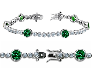 The dazzling Original Star K(tm) High End Tennis Bracelet With 6pcs 6mm Round Simulated Emerald, crafted in .925 Sterling Silver. This beautiful design is mounted with 6 stones bezel set green Round Simulated Emerald, 36 stones prong set colorless Round Cubic Zirconia. This style measures 0.20 Inches wide, 7.50 Inches long. Emerald is May Birthstone: From the French 'esmeralde' meaning 'green gem'. A symbol of immortality, it is said to improve memory, wisdom and intuition. Designer: Star K - This beautiful design, is part of the exclusive Star K. jewelry collection. Star K. designs are copyrighted, so please be aware of cheap imitations selling online. Only original Star K. creations are made using the highest quality materials and craftsmanship, backed by an exclusive Lifetime Warranty. Warranty: - This item is covered by Finejewelers exclusive Silver Shield Lifetime Warranty. This exclusive lifetime coverage is offered ONLY by Finejewelers so please shop with confidence, our quality is guaranteed for life!