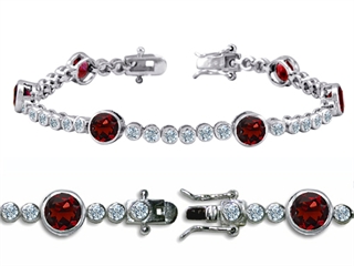 The stunning Original Star K(tm) High End Tennis Bracelet With 6pcs 6mm Round Genuine Garnet, crafted in .925 Sterling Silver. This beautiful design is mounted with 6 stones bezel set red-brown Round Garnet, 36 stones prong set colorless Round Cubic Zirconia. This style measures 0.20 Inches wide, 7.50 Inches long. Garnet is January Birthstone: From the Latin word 'granatus', the seeds of a pomegranate fruit. A symbol of fidelity, Garnet's powers include healing, strength, protection. Designer: Star K - This beautiful design, is part of the exclusive Star K. jewelry collection. Star K. designs are copyrighted, so please be aware of cheap imitations selling online. Only original Star K. creations are made using the highest quality materials and craftsmanship, backed by an exclusive Lifetime Warranty. Warranty: - This item is covered by Finejewelers exclusive Silver Shield Lifetime Warranty. This exclusive lifetime coverage is offered ONLY by Finejewelers so please shop with confidence, our quality is guaranteed for life!