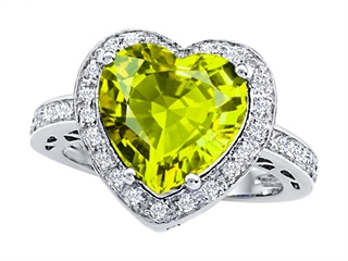 This beautiful Original Star K(tm) Large 10mm Heart Shape Simulated Peridot Engagement Wedding Ring, crafted in 925 Sterling Silver. This amazing design is set with 1 stone prong set green-yellow Heart Shape Simulated Peridot, 28 stones channel set colorless Round Brilliant Cubic Zirconia. This design measures 13.50 mm wide, 13.50 mm long. Peridot is August Birthstone: From the Greek 'Peridona' for 'giving plenty'. A symbol of the sun, Peridot is thought to bring good luck, peace, protection and success. Designer: Star K - This beautiful design, is part of the exclusive Star K. jewelry collection. Star K. designs are copyrighted, so please be aware of cheap imitations selling online. Only original Star K. creations are made using the highest quality materials and craftsmanship, backed by an exclusive Lifetime Warranty. Warranty: - This item is covered by Finejewelers exclusive Silver Shield Lifetime Warranty. This exclusive lifetime coverage is offered ONLY by Finejewelers so please shop with confidence, our quality is guaranteed for life!