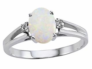 This amazing Tommaso Design(tm) Genuine Opal and Diamond Ring, crafted in 10 kt White Gold. This beautiful design is set with 1 stone 0.40 carats prong set white iridescent Oval Opal, 2 stones 0.04 carats prong set Round Brilliant Diamond K color I3 clarity. This product measures 5.00 mm wide, 7.00 mm long. Opal is October Birthstone: From the Greek 'opallios', meaning 'colour change'. A symbol of hope and faithfulness, it inspires true love and brings confidence. Diamond is April Birthstone: From the Greek 'adamas' meaning 'invincible'. A symbol of enduring love, it is believed to bring the wearer luck and success. Made in USA Designer: Tommaso design Studio - This classic design, is made by the renowned Tommaso Design Studio. Tommaso creations are copyrighted, so please be aware of cheap imitations selling online. Only original Tommaso designs are made using the highest quality materials and craftsmanship, backed by an exclusive Lifetime Warranty. Warranty: - This item is covered by Finejewelers exclusive Silver Shield Lifetime Warranty. This exclusive lifetime coverage is offered ONLY by Finejewelers so please shop with confidence, our quality is guaranteed for life!