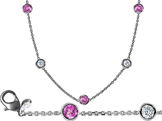 The amazing Original Star K(tm) 72 Inch Gems By The Yard Necklace With Cubic Zirconia And Simulated Pink Sapphire, crafted in 925 Sterling Silver. This amazing design is mounted with 24 stones prong set colorless Round Cubic Zirconia, 24 stones bezel set pink Round Created Pink Sapphire. This product measures 6.00 mm wide, 1829 mm long. Sapphire is September Birthstone: From the Latin 'sapphirus' meaning 'blue'. A symbol for truth and sincerity, it inspires spiritual enlightenment, health and inner peace. Designer: Star K - This beautiful design, is part of the exclusive Star K. jewelry collection. Star K. designs are copyrighted, so please be aware of cheap imitations selling online. Only original Star K. creations are made using the highest quality materials and craftsmanship, backed by an exclusive Lifetime Warranty. Warranty: - This item is covered by Finejewelers exclusive Silver Shield Lifetime Warranty. This exclusive lifetime coverage is offered ONLY by Finejewelers so please shop with confidence, our quality is guaranteed for life!