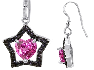 This amazing Original Star K(tm) Heart Shape Created Pink Sapphire Black Star Hanging Hook Earrings, crafted in 925 Sterling Silver. This attractive design is set with 2 stones prong set pink Heart Shape Created Pink Sapphire. This style measures 12.00 mm wide, 24.00 mm long. Sapphire is September Birthstone: From the Latin 'sapphirus' meaning 'blue'. A symbol for truth and sincerity, it inspires spiritual enlightenment, health and inner peace. Designer: Star K - This beautiful design, is part of the exclusive Star K. jewelry collection. Star K. designs are copyrighted, so please be aware of cheap imitations selling online. Only original Star K. creations are made using the highest quality materials and craftsmanship, backed by an exclusive Lifetime Warranty. Warranty: - This item is covered by Finejewelers exclusive Silver Shield Lifetime Warranty. This exclusive lifetime coverage is offered ONLY by Finejewelers so please shop with confidence, our quality is guaranteed for life!
