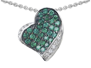 This dazzling Original Star K(tm) Heart Shape Love Pendant With Simulated Emerald, crafted in 925 Sterling Silver. This amazing design is mounted with 29 stones prong set green Round Simulated Emerald, 9 stones prong set colorless Round Cubic Zirconia. This design measures 14.00 mm wide, 16.00 mm long. Emerald is May Birthstone: From the French 'esmeralde' meaning 'green gem'. A symbol of immortality, it is said to improve memory, wisdom and intuition. Free 18 inches chain included Designer: Star K - This beautiful design, is part of the exclusive Star K. jewelry collection. Star K. designs are copyrighted, so please be aware of cheap imitations selling online. Only original Star K. creations are made using the highest quality materials and craftsmanship, backed by an exclusive Lifetime Warranty. Warranty: - This item is covered by Finejewelers exclusive Silver Shield Lifetime Warranty. This exclusive lifetime coverage is offered ONLY by Finejewelers so please shop with confidence, our quality is guaranteed for life!