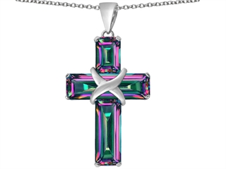The amazing Original Star K(tm) Large Christian Cross Pendant with Emerald Cut Rainbow Mystic Topaz Stones, crafted in 925 Sterling Silver. This amazing design is mounted with 1 stone prong set multicolor Emerald Cut Mystic Topaz clean clarity, 1 stone prong set multicolor Emerald Cut Mystic Topaz clean clarity, 1 stone prong set multicolor Emerald Cut Mystic Topaz clean clarity. This design measures 20.00 mm wide, 38.00 mm long. Free 18 inches Sterling Silver Chain included Designer: Star K - This beautiful design, is part of the exclusive Star K. jewelry collection. Star K. designs are copyrighted, so please be aware of cheap imitations selling online. Only original Star K. creations are made using the highest quality materials and craftsmanship, backed by an exclusive Lifetime Warranty. Warranty: - This item is covered by Finejewelers exclusive Silver Shield Lifetime Warranty. This exclusive lifetime coverage is offered ONLY by Finejewelers so please shop with confidence, our quality is guaranteed for life!