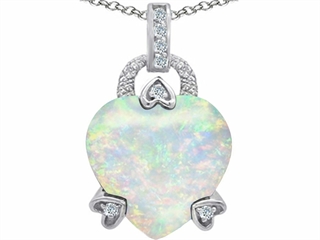 The impressive Original Star K(tm) Large Lock Love Heart Pendant with 13mm Heart Shape Created Opal, crafted in 925 Sterling Silver. This amazing design is mounted with 1 stone prong set white iridescent Heart Shape Created Opal, 8 stones prong set colorless Round Cubic Zirconia. This design measures 13.00 mm wide, 22.00 mm long. Opal is October Birthstone: From the Greek 'opallios', meaning 'colour change'. A symbol of hope and faithfulness, it inspires true love and brings confidence. Free 18 inches chain included Designer: Star K - This beautiful design, is part of the exclusive Star K. jewelry collection. Star K. designs are copyrighted, so please be aware of cheap imitations selling online. Only original Star K. creations are made using the highest quality materials and craftsmanship, backed by an exclusive Lifetime Warranty. Warranty: - This item is covered by Finejewelers exclusive Silver Shield Lifetime Warranty. This exclusive lifetime coverage is offered ONLY by Finejewelers so please shop with confidence, our quality is guaranteed for life!