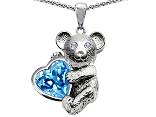 This beautiful Original Star K(tm) Love Bear Hugging Birthstone of December 8mm Heart Shape Genuine Blue Topaz, crafted in 925 Sterling Silver. This beautiful design is mounted with 1 stone prong set light blue Heart Shape Blue Topaz. This style measures 18.00 mm wide, 22.00 mm long. Blue Topaz is December Birthstone: From the Greek 'topazos' meaning 'to seek'. Topaz is said to enhance spiritual potential, intelligence, creativity and wealth. Free 18 inches Sterling Silver Chain included Designer: Star K - This beautiful design, is part of the exclusive Star K. jewelry collection. Star K. designs are copyrighted, so please be aware of cheap imitations selling online. Only original Star K. creations are made using the highest quality materials and craftsmanship, backed by an exclusive Lifetime Warranty. Warranty: - This item is covered by Finejewelers exclusive Silver Shield Lifetime Warranty. This exclusive lifetime coverage is offered ONLY by Finejewelers so please shop with confidence, our quality is guaranteed for life!
