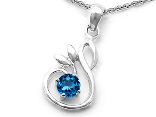 The impressing Original Star K(tm) Round Genuine Blue Topaz Swan Pendant, crafted in 925 Sterling Silver. This amazing design is set with 1 stone prong set medium to light blue Round Blue Topaz. This style measures 11.00 mm wide, 25.00 mm long. Blue Topaz is December Birthstone: From the Greek 'topazos' meaning 'to seek'. Topaz is said to enhance spiritual potential, intelligence, creativity and wealth. Free 18 inches Sterling Silver Chain included Designer: Star K - This beautiful design, is part of the exclusive Star K. jewelry collection. Star K. designs are copyrighted, so please be aware of cheap imitations selling online. Only original Star K. creations are made using the highest quality materials and craftsmanship, backed by an exclusive Lifetime Warranty. Warranty: - This item is covered by Finejewelers exclusive Silver Shield Lifetime Warranty. This exclusive lifetime coverage is offered ONLY by Finejewelers so please shop with confidence, our quality is guaranteed for life!
