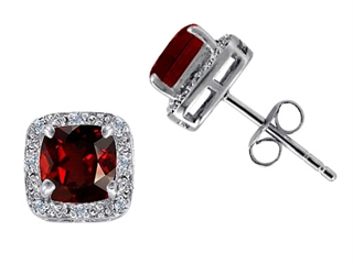 10K White Gold Genuine 6mm Cushion Cut Garnet and Diamond Earring Studs crafted in 10 kt White Gold Dimensions: Width: 8.00 mm Length: 8.00 mm. 2 Stones 2.00 Carats Round 6mm Garnet Color: Red-Brown Clarity: Clean, 16 Stones 0.08 Carats Genuine Round Diamonds Color: I Clarity: I1 .
