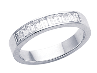 The amazing Karina B(tm) Baguette Diamonds Band, available in a range of metals including 18 kt Yellow Gold, 18 kt White Gold and Platinum 950. This beautiful design is mounted with 10 stones 0.75 carats channel set Baguette Diamond G color VS1 - VS2 clarity. This design measures 3.80 mm wide. Diamond is April Birthstone: From the Greek 'adamas' meaning 'invincible'. A symbol of enduring love, it is believed to bring the wearer luck and success. Made in USA Designer: Karina B - Classic style, elegant design and perfect craftsmanship. This is the inspiration behind Karina B. Each design we create is produced with the latest technological advancements in computers and machinery. Every piece of jewelry manufactured is done from scratch according to the exact specifications of the design and stone sizes. Each precious stone is set with the guidance of a master stone setter, using the equipment that was not available in the past, to precise measurements of a hundredth of a millimeter. Combining our manufacturing techniques with high quality diamonds and precious stones along with Platinum or 18 KT gold gives you, the educated consumer, an exceptional masterpiece. If you are lucky enough to own a piece by Karina B., wear it with the confidence and pride of knowing that there is nothing made better. Warranty: - This item is covered by Finejewelers exclusive Silver Shield Lifetime Warranty. This exclusive lifetime coverage is offered ONLY by Finejewelers so please shop with confidence, our quality is guaranteed for life!. Metal Available: 18 kt Yellow Gold, 18 kt White Gold, Platinum 950.