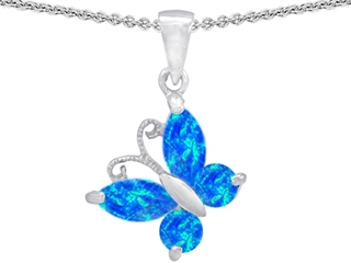 This impressive Original Star K(tm) Butterfly Pendant Made with Created Blue Opal, crafted in 925 Sterling Silver. This beautiful design is set with 2 stones prong set blue iridescent Marquise Created Blue Opal clean clarity, 2 stones prong set blue iridescent Round Created Blue Opal clean clarity. This design measures 15.00 mm wide, 25.00 mm long. Free 18 inches chain included Designer: Star K - This beautiful design, is part of the exclusive Star K. jewelry collection. Star K. designs are copyrighted, so please be aware of cheap imitations selling online. Only original Star K. creations are made using the highest quality materials and craftsmanship, backed by an exclusive Lifetime Warranty. Warranty: - This item is covered by Finejewelers exclusive Silver Shield Lifetime Warranty. This exclusive lifetime coverage is offered ONLY by Finejewelers so please shop with confidence, our quality is guaranteed for life!
