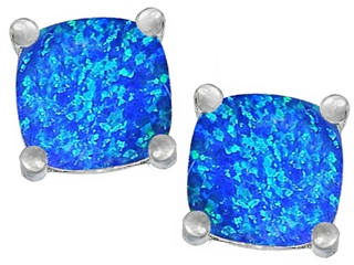 This delightful Original Star K(tm) Cushion Cut 7mm Created Blue Opal Earrings Studs, crafted in 925 Sterling Silver. This attractive design is mounted with 2 stones prong set blue green iridescent Cushion Cut Created Blue Opal. This design measures 7.00 mm wide, 7.00 mm long. Designer: Star K - This beautiful design, is part of the exclusive Star K. jewelry collection. Star K. designs are copyrighted, so please be aware of cheap imitations selling online. Only original Star K. creations are made using the highest quality materials and craftsmanship, backed by an exclusive Lifetime Warranty. Warranty: - This item is covered by Finejewelers exclusive Silver Shield Lifetime Warranty. This exclusive lifetime coverage is offered ONLY by Finejewelers so please shop with confidence, our quality is guaranteed for life!
