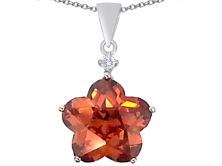 This impressing Original Star K(tm) Large 14mm Flower Shape Star Pendant with Simulated Orange Mexican Fire Opal, crafted in 925 Sterling Silver. This beautiful design is set with 1 stone prong set red - orange Star Shape Simulated Fire Opal clean clarity, 1 stone prong set colorless Round Cubic Zirconia clean clarity. This product measures 17.00 mm wide, 26.00 mm long. Free 18 inches chain included Designer: Star K - This beautiful design, is part of the exclusive Star K. jewelry collection. Star K. designs are copyrighted, so please be aware of cheap imitations selling online. Only original Star K. creations are made using the highest quality materials and craftsmanship, backed by an exclusive Lifetime Warranty. Warranty: - This item is covered by Finejewelers exclusive Silver Shield Lifetime Warranty. This exclusive lifetime coverage is offered ONLY by Finejewelers so please shop with confidence, our quality is guaranteed for life!