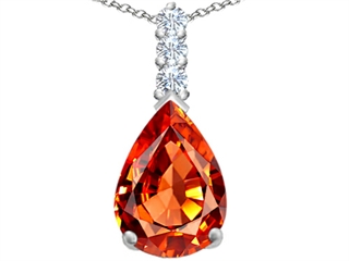 The attractive Original Star K(tm) Large 14x10mm Pear Shape Simulated Orange Mexican Fire Opal Pendant, crafted in 925 Sterling Silver. This amazing design is mounted with 1 stone prong set red- orange Pear Shape Simulated Fire Opal, 3 stones prong set colorless Round Cubic Zirconia. This style measures 11.00 mm wide, 24.00 mm long. Free 18 inches Sterling Silver Chain included Designer: Star K - This beautiful design, is part of the exclusive Star K. jewelry collection. Star K. designs are copyrighted, so please be aware of cheap imitations selling online. Only original Star K. creations are made using the highest quality materials and craftsmanship, backed by an exclusive Lifetime Warranty. Warranty: - This item is covered by Finejewelers exclusive Silver Shield Lifetime Warranty. This exclusive lifetime coverage is offered ONLY by Finejewelers so please shop with confidence, our quality is guaranteed for life!
