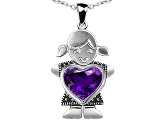 The amazing Original Star K(tm) Little Girl Holding 8mm Heart Mother Birthstone Pendant with Genuine Amethyst, crafted in 925 Sterling Silver. This beautiful design is mounted with 1 stone prong set violet Heart Shape Amethyst. This design measures 15.00 mm wide, 26.00 mm long. Amethyst is February Birthstone: From the Greek 'amethystos' meaning 'sober'. A symbol of trust, Amethyst is thought to protect against seduction and provide peace. Free 18 inches Sterling Silver Chain included Designer: Star K - This beautiful design, is part of the exclusive Star K. jewelry collection. Star K. designs are copyrighted, so please be aware of cheap imitations selling online. Only original Star K. creations are made using the highest quality materials and craftsmanship, backed by an exclusive Lifetime Warranty. Warranty: - This item is covered by Finejewelers exclusive Silver Shield Lifetime Warranty. This exclusive lifetime coverage is offered ONLY by Finejewelers so please shop with confidence, our quality is guaranteed for life!