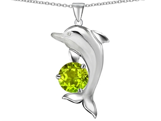 This impressive Original Star K(tm) Round 7mm Genuine Peridot Good Luck Dolphin Pendant, crafted in 925 Sterling Silver. This amazing design is set with 1 stone prong set green-yellow Round Peridot. This design measures 15.00 mm wide, 25.00 mm long. Peridot is August Birthstone: From the Greek 'Peridona' for 'giving plenty'. A symbol of the sun, Peridot is thought to bring good luck, peace, protection and success. Free 18 inches Sterling Silver Chain included Designer: Star K - This beautiful design, is part of the exclusive Star K. jewelry collection. Star K. designs are copyrighted, so please be aware of cheap imitations selling online. Only original Star K. creations are made using the highest quality materials and craftsmanship, backed by an exclusive Lifetime Warranty. Warranty: - This item is covered by Finejewelers exclusive Silver Shield Lifetime Warranty. This exclusive lifetime coverage is offered ONLY by Finejewelers so please shop with confidence, our quality is guaranteed for life!