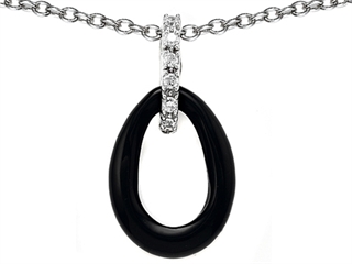 The amazing Original Star K(tm) Simulated Black Onyx Pearl Enhancer Pendant, crafted in 925 Sterling Silver. This attractive design is set with 6 stones prong set colorless Round Brilliant Cubic Zirconia. This style measures 14.00 mm wide, 30.00 mm long. Free 18 inches chain included Designer: Star K - This beautiful design, is part of the exclusive Star K. jewelry collection. Star K. designs are copyrighted, so please be aware of cheap imitations selling online. Only original Star K. creations are made using the highest quality materials and craftsmanship, backed by an exclusive Lifetime Warranty. Warranty: - This item is covered by Finejewelers exclusive Silver Shield Lifetime Warranty. This exclusive lifetime coverage is offered ONLY by Finejewelers so please shop with confidence, our quality is guaranteed for life!