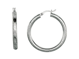 This impressing Rhodium Plated Textured Stardust Diamond Cut Roud Hoop Earrings, crafted in 925 Sterling Silver. This product measures 4.00 mm wide, 40.00 mm long. Warranty: - This item is covered by Finejewelers exclusive Silver Shield Lifetime Warranty. This exclusive lifetime coverage is offered ONLY by Finejewelers so please shop with confidence, our quality is guaranteed for life!
