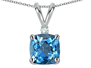 The alluring Tommaso Design(tm) 7mm Cushion Cut Genuine Blue Topaz Pendant, crafted in 14 kt White Gold. This attractive design is mounted with 1 stone 1.50 carats prong set medium to light blue Cushion Cut Blue Topaz, 1 stone 0.02 carats prong set Round Brilliant Diamond K color I3 clarity. This product measures 7.00 mm wide, 13.00 mm long. Blue Topaz is December Birthstone: From the Greek 'topazos' meaning 'to seek'. Topaz is said to enhance spiritual potential, intelligence, creativity and wealth. Diamond is April Birthstone: From the Greek 'adamas' meaning 'invincible'. A symbol of enduring love, it is believed to bring the wearer luck and success. Free 18 inches gold chain included Designer: Tommaso design Studio - This classic design, is made by the renowned Tommaso Design Studio. Tommaso creations are copyrighted, so please be aware of cheap imitations selling online. Only original Tommaso designs are made using the highest quality materials and craftsmanship, backed by an exclusive Lifetime Warranty. Warranty: - This item is covered by Finejewelers exclusive Silver Shield Lifetime Warranty. This exclusive lifetime coverage is offered ONLY by Finejewelers so please shop with confidence, our quality is guaranteed for life!