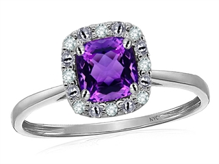 The impressing Tommaso Design(tm) Classic Cushion Cut Designer Ring with Genuine Diamonds and Amethyst, crafted in 10 kt White Gold. This amazing design is set with 1 stone 1.50 carats prong set violet Cushion Cut Amethyst clean clarity, 8 stones 0.04 carats prong set Round Brilliant Diamond K color I3 clarity. This style measures 9.00 mm wide, 9.00 mm long. Amethyst is February Birthstone: From the Greek 'amethystos' meaning 'sober'. A symbol of trust, Amethyst is thought to protect against seduction and provide peace. Diamond is April Birthstone: From the Greek 'adamas' meaning 'invincible'. A symbol of enduring love, it is believed to bring the wearer luck and success. Designer: Tommaso design Studio - This classic design, is made by the renowned Tommaso Design Studio. Tommaso creations are copyrighted, so please be aware of cheap imitations selling online. Only original Tommaso designs are made using the highest quality materials and craftsmanship, backed by an exclusive Lifetime Warranty. Warranty: - This item is covered by Finejewelers exclusive Silver Shield Lifetime Warranty. This exclusive lifetime coverage is offered ONLY by Finejewelers so please shop with confidence, our quality is guaranteed for life!