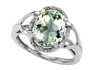 The amazing Tommaso Design(tm) Oval 10x8mm Genuine Green Amethyst and Diamond Ring, crafted in 10 kt White Gold. This amazing design is set with 1 stone 2.00 carats prong set light green Oval Green Amethyst, 4 stones 0.02 carats prong set Round Brilliant Diamond K color I3 clarity. This product measures 10.00 mm wide, 12.00 mm long. Amethyst is February Birthstone: From the Greek 'amethystos' meaning 'sober'. A symbol of trust, Amethyst is thought to protect against seduction and provide peace. Diamond is April Birthstone: From the Greek 'adamas' meaning 'invincible'. A symbol of enduring love, it is believed to bring the wearer luck and success. Designer: Tommaso design Studio - This classic design, is made by the renowned Tommaso Design Studio. Tommaso creations are copyrighted, so please be aware of cheap imitations selling online. Only original Tommaso designs are made using the highest quality materials and craftsmanship, backed by an exclusive Lifetime Warranty. Warranty: - This item is covered by Finejewelers exclusive Silver Shield Lifetime Warranty. This exclusive lifetime coverage is offered ONLY by Finejewelers so please shop with confidence, our quality is guaranteed for life!